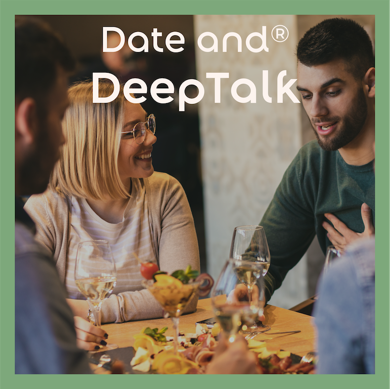 Auf dem Tisch liegen unsere DeepTalk Cards — Fragen, die ein Stück tiefer gehen, ohne zu privat zu werden.