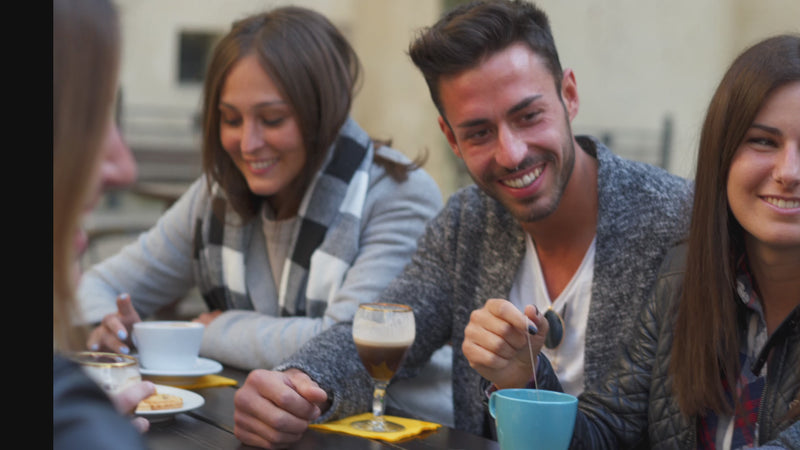 Ihr trefft euch in einem gemütlichen Frühstückscafé und nehmt an eurem reservierten Tisch Platz.